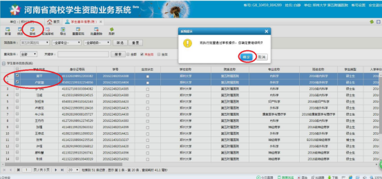在学生基本信息页面中点“未生效”前面的复选框,点“搜索”按钮系统自动会将已经首次登录并完善过个人信息的新生数据显示出来,院系给据学生实际情况,点击每个学生姓名前面的复选框后点“审核”按钮,在弹出的提示窗口中点确定即可。(注:此功能可以批量操作)如下图示。